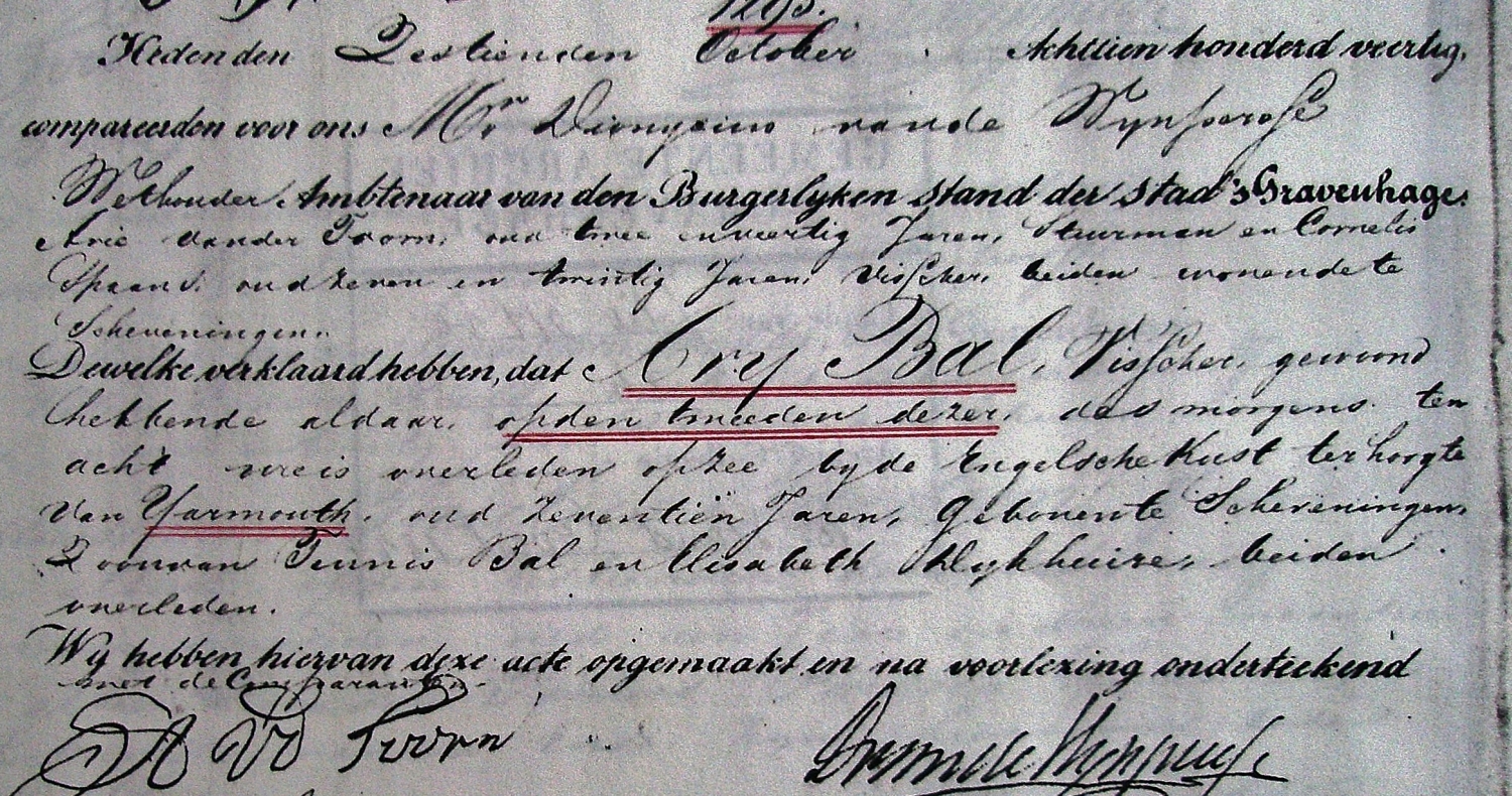 De drie overigen -stuurman Arie van der Toorn, Cornelis Spaans en Jan Bal- konden met behulp van reddingslijnen worden gered door een drietal te hulp gekomen Scheveningse pinken