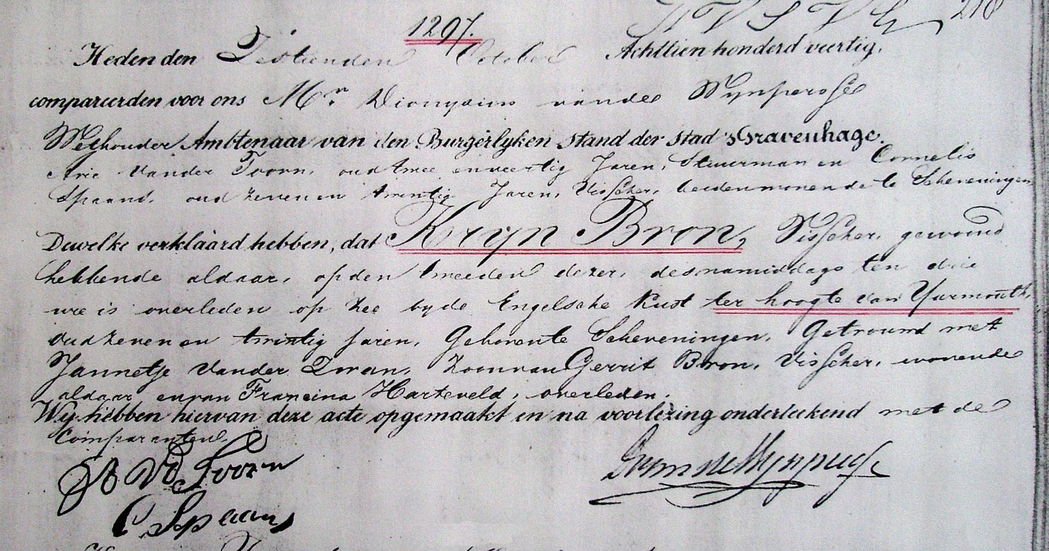 De schuit stootte 2 ½ uur ten noorden van Yarmouth op een wrak. De schuit sloeg lek, liep vol,sloeg op zijn zijde en dreef vervolgens weg. De acht vissers konden zich nog op een klein gedeelte van de schuit vasthouden. Vijf vissers moesten uiteindelijk loslaten of stierven tengevolge van uitputting.