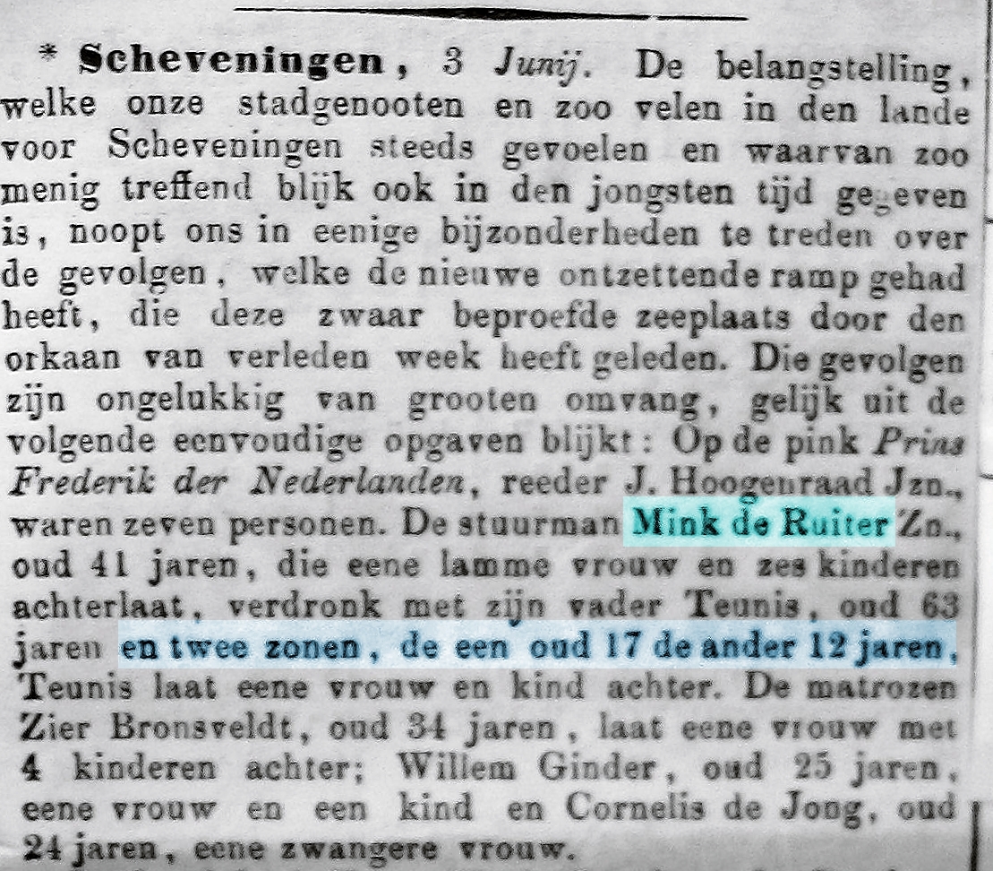 * Arie- en Teunis de Ruiter zijn zoons van stuurman Minnekus de Ruiter. Voorts had Teunis een tweelingbroer Gijsbert