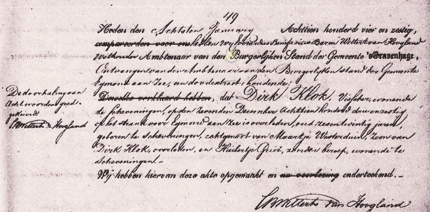 * Dirk Klok: zijn vader Dirk verdronk in februari 1854 op de schuit 'Zeemanshoop.'