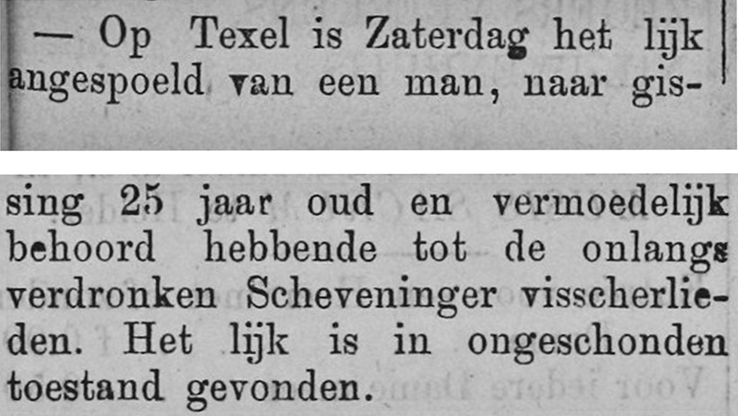 * Dirk Hoogendijk spoelde eind oktober op het strand bij Texel aan.