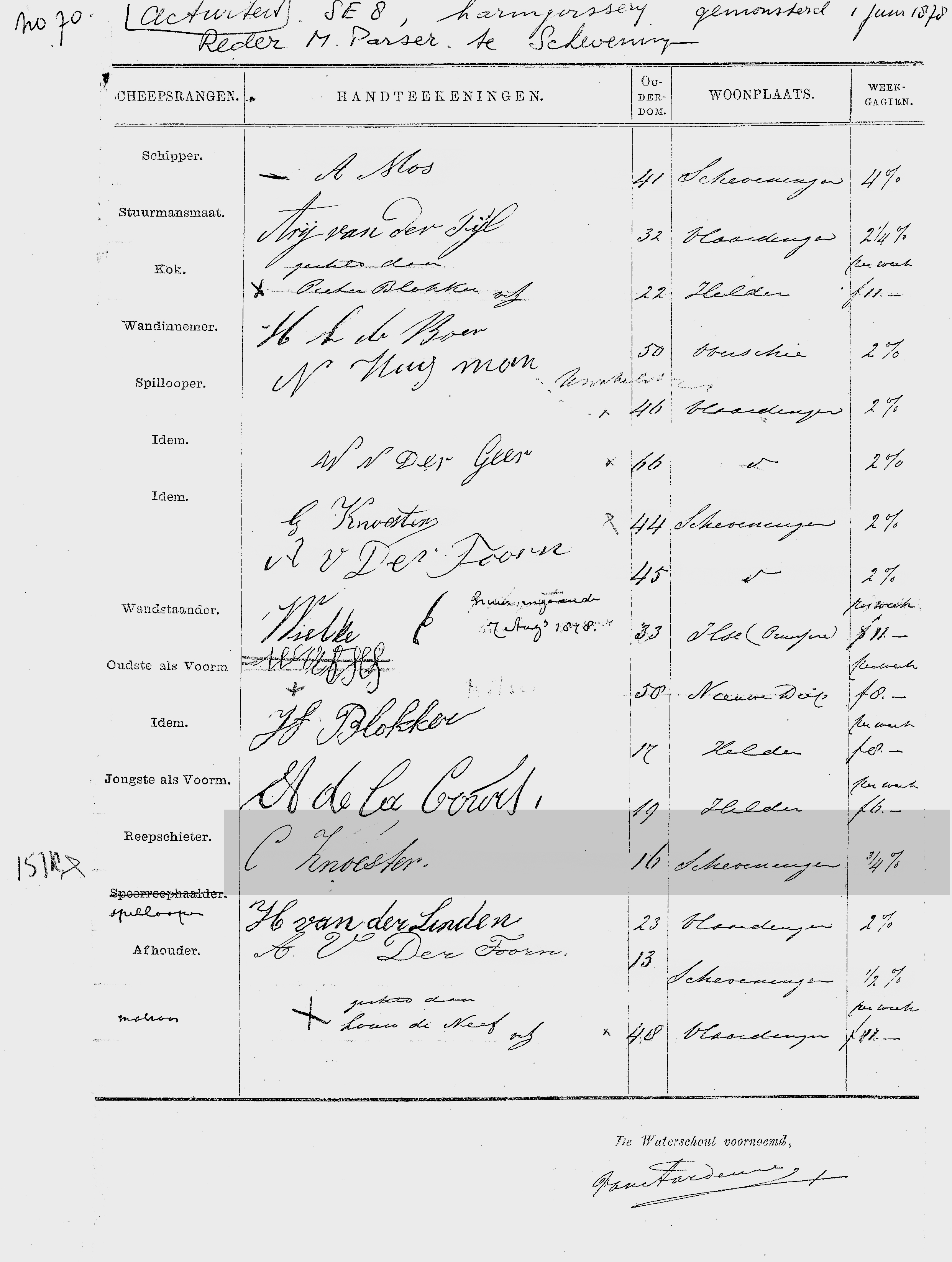 * De overige bemanning kwam van: Vlaardingen, Den Helder, Nieuwendiep, Overschie en Pruisen (Dld.)