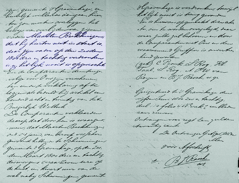 * Pieter Mos: op 26 maart spoelde op het strand onder ’s-Gravenzande het lijk van de schipper aan en werd in die plaats begraven.