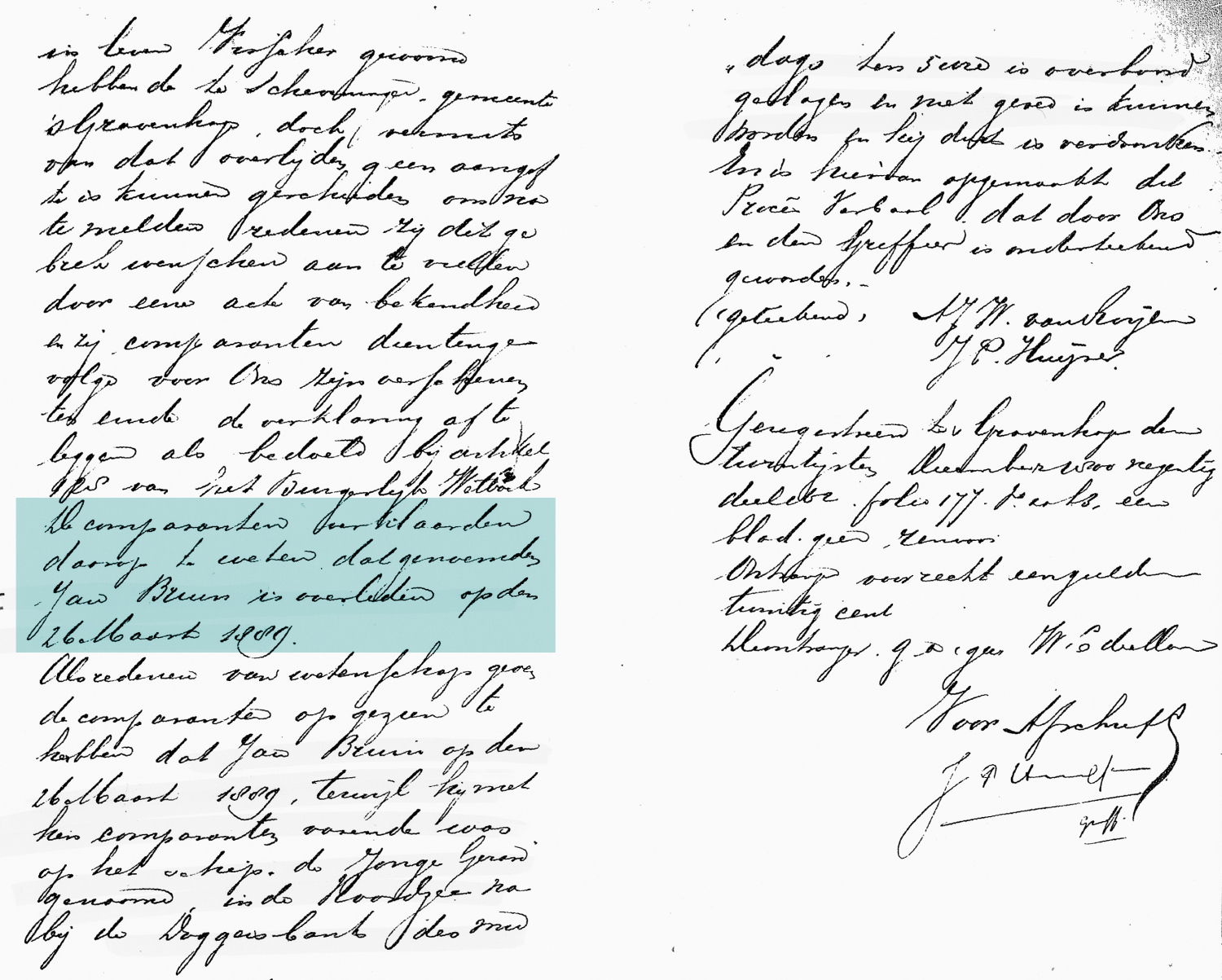 Het is aan de geredde matroos Dijkhuizen te danken dat er een beschrijving van het droevige verlies van twee van zijn collega’s kan worden gedaan.
