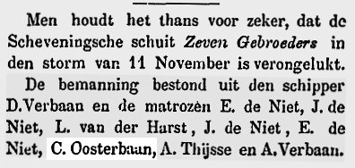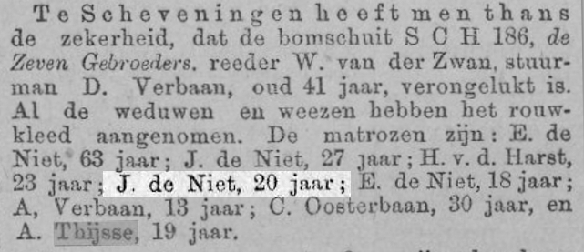 Daniël- en Arie Verbaan zijn vader en zoon. De broer van Daniël, Johannes Huibert- verdronk in september 1901 bij het aan boord gaan van de bomschuit SCH 278 'Alice' in de haven van Vlaardingen.