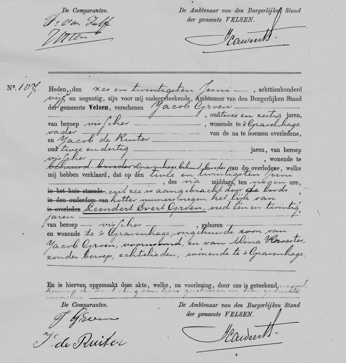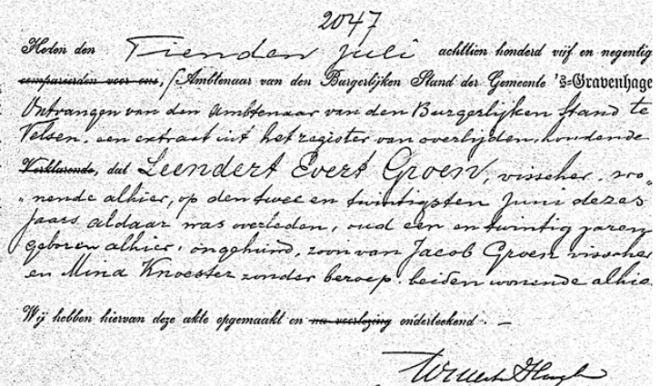 Op 22 juni werd te IJmuiden door de Loodskotter nr. 9 het lichaam aangebracht van de visser Leendert Evert Groen. Vader Jacob Groen was naar IJmuiden gereisd voor identificatie en aangifte van het overlijden van zijn zoon.