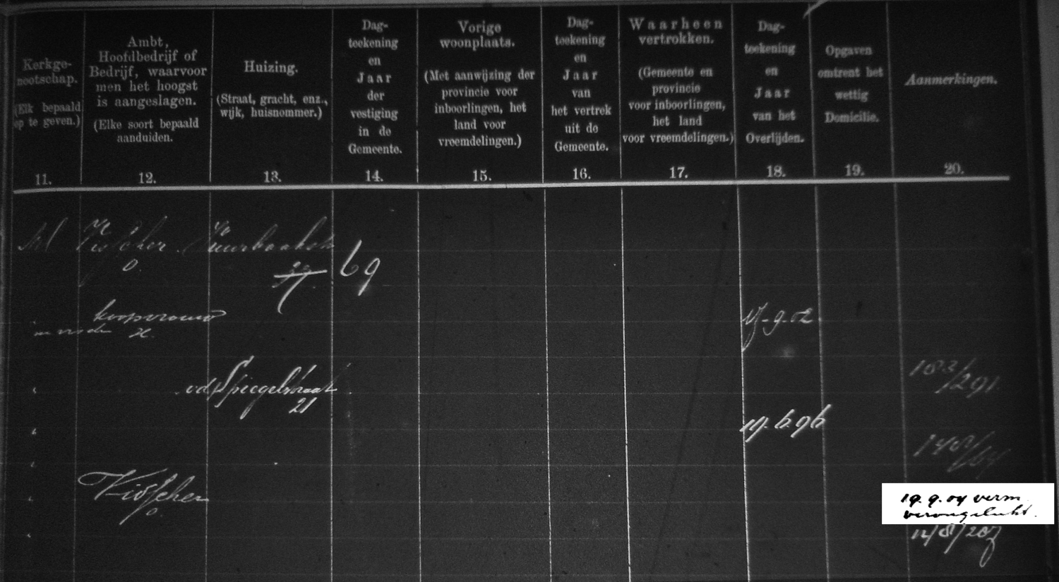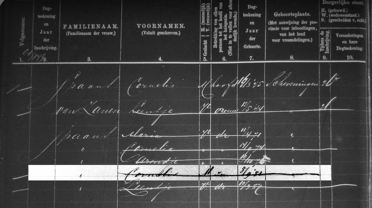 Cornelis Spaans: in het Bevolkingsregister 1895-1913 wordt het foutieve jaartal 1904 vermeld.