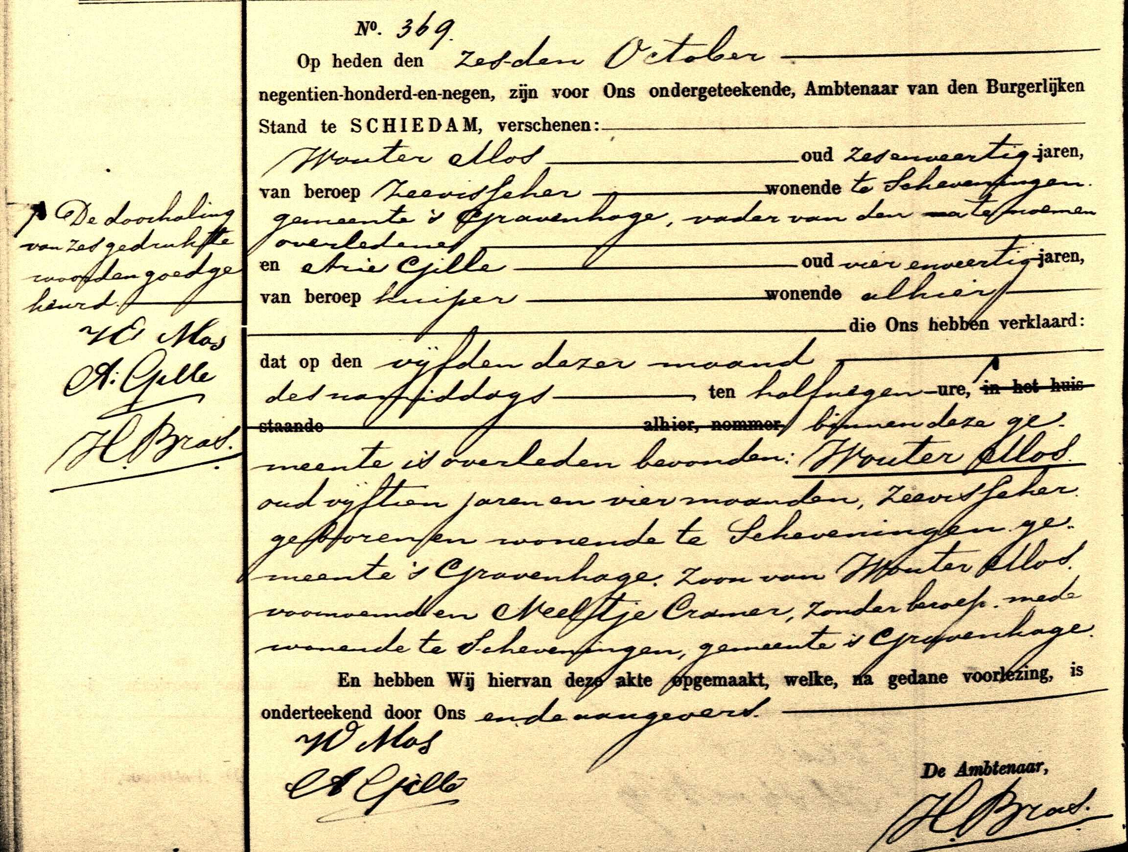 In de buitenhaven van Schiedam was van de vissloep de zoon van de schipper -eveneens Wouter geheten- bij het aan boord gaan van de loopplank gevallen en verdronken.