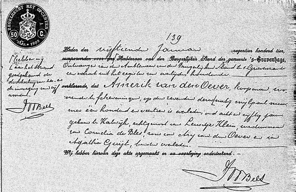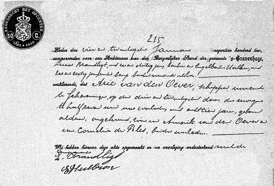 Op het strand ter hoogte van strandpaal 114 - gelegen tussen Hoek van Holland en ’s-Gravenzande- werd het lichaam van Amerik van den Oever gevonden. Het lichaam werd in een kruipende houding aangetroffen zodat werd aangenomen dat Van den Oever zwemmend het strand heeft weten te bereiken maar door uitputting is overleden. Op dezelfde dag werd door de stoomreddingboot van Hoek van Holland ‘Prins der Nederlanden’ een mast en een zeil van de botter aangebracht. Het scheepje zelf lag als wrak op een van de Delflandse hoofden en werd nog met haken doorzocht op lijken. Aan de overblijfselen van de botter was op te maken dat het scheepje was overstoomd waarbij de zoon -Arie van den Oever- direct overboord moest zijn geslagen. Op de 23e januari kwam vlak voor de buitenhaven van Scheveningen het lichaam van Arie van den Oever aandrijven zodat ook hij ter aarde kon worden besteld. Van het schip welke de botter had overstoomd is niets bekend geworden.