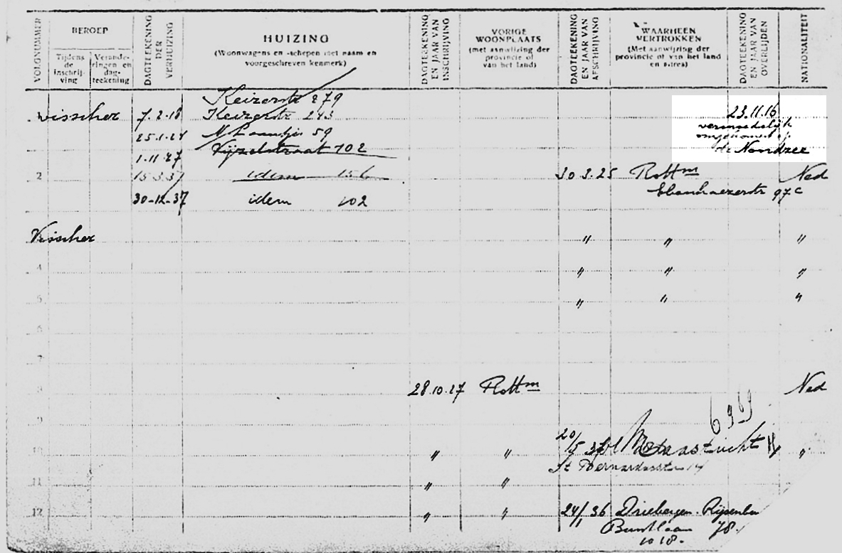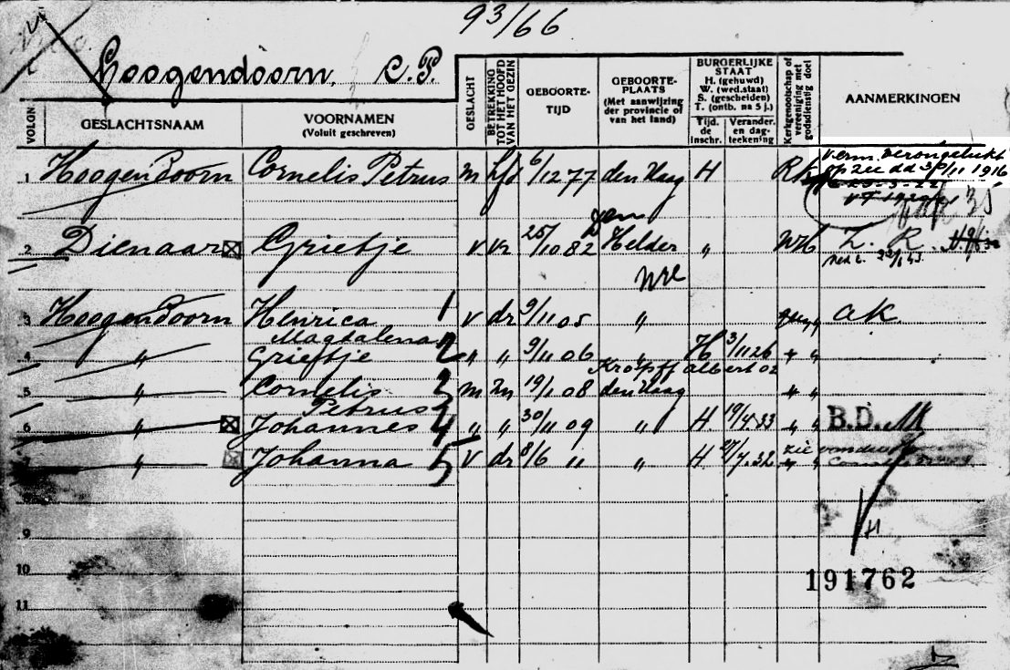 Cornelis Petrus Hoogendoorn: was geboren in Den Haag. Hij huwde 1905 in Den Helder. Woonde daarna circa twee jaar in Den Helder maar keerde eind 1907 weer terug naar Den Haag.