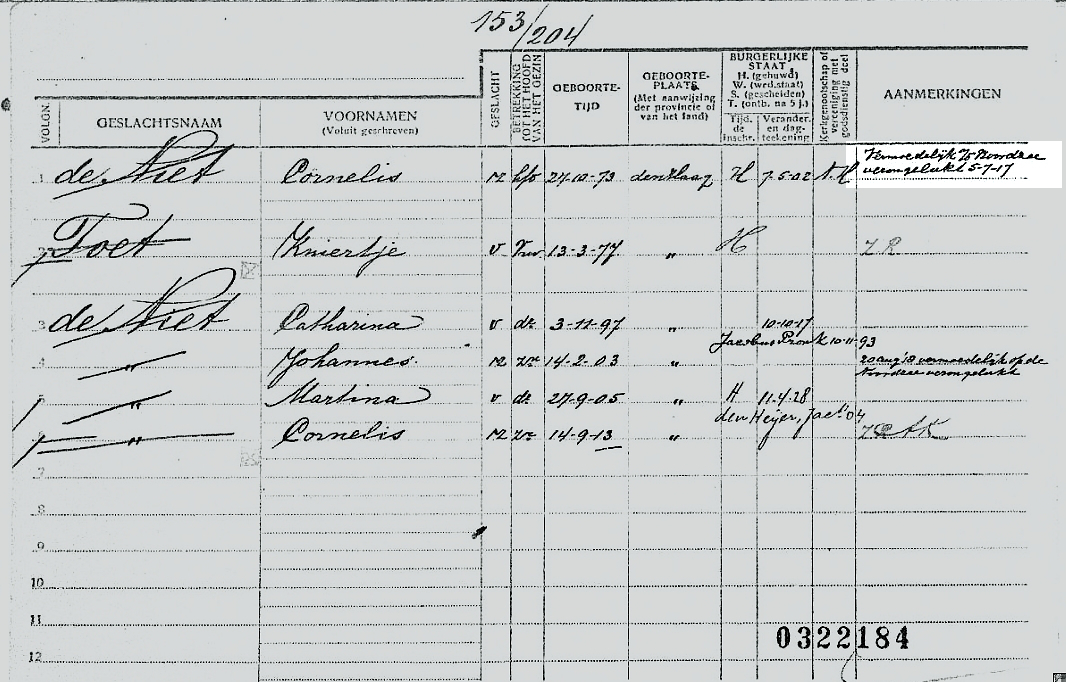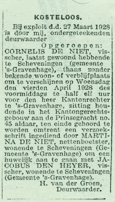 Cornelis de Niet: zijn zoon Johannes,- kwam in augustus 1918 om op de SCH 402 'Huibertje'.