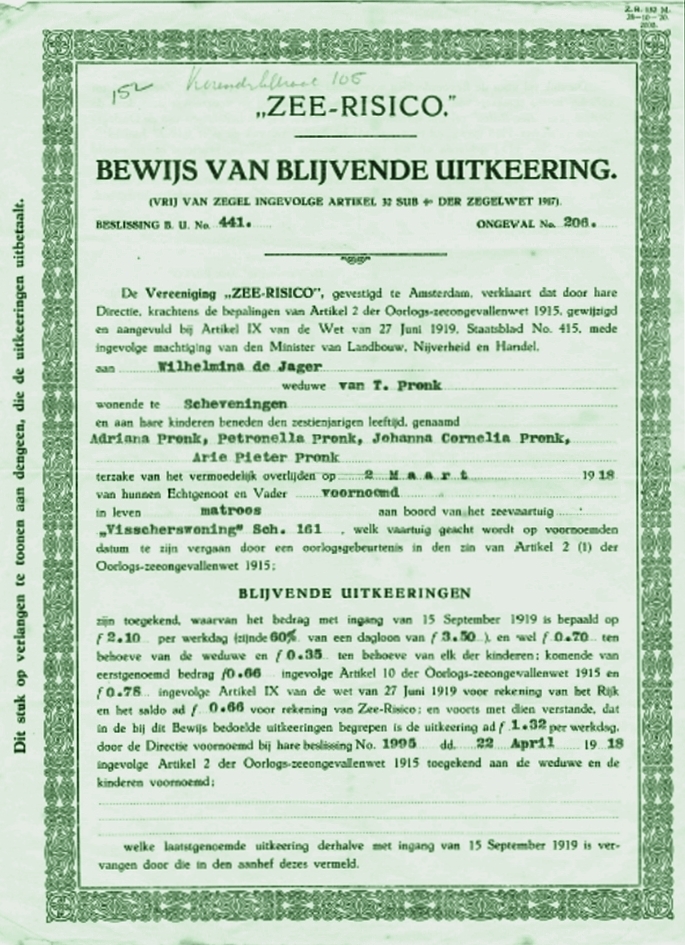 Mogelijk door oorlogsomstandigheden vergaan. (1918)