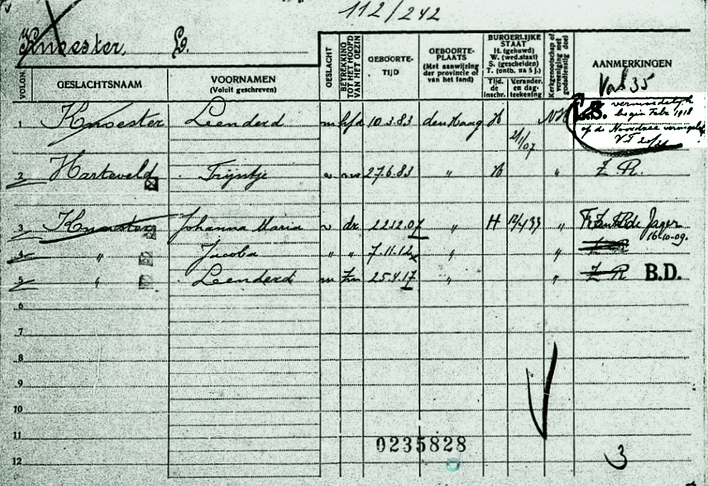 Mogelijk door oorlogsomstandigheden vergaan. (1918)