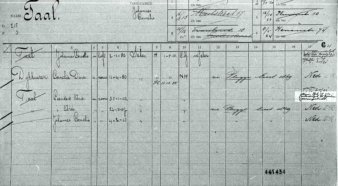* Leendert Arie Taal: zijn vader Johannes Cornelis,- kwam rond dezelfde datum om op de SCH 134 'President Commissaris van den Bergh'