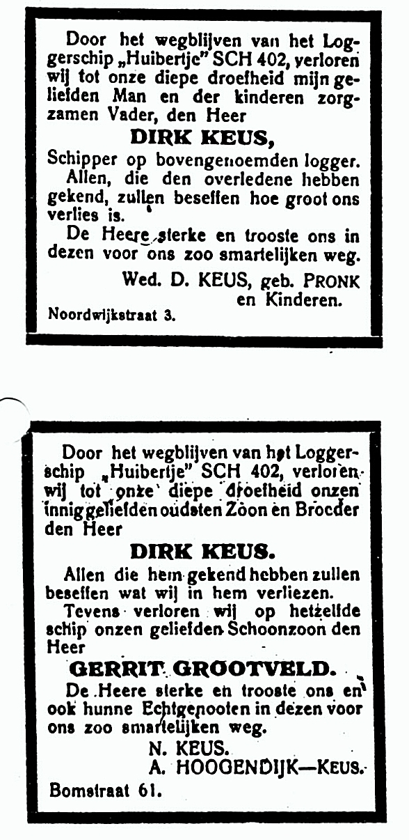Dirk Keus: zijn zoon Johannes- kwam in 1926 om op de VL 213 'Theodoor.'