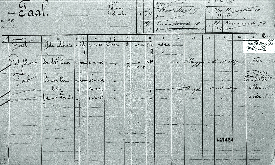 * Johannes Cornelis Taal: zijn zoon Leendert Arie- kwam rond dezelfde datum om op de SCH 319 'Johanna'