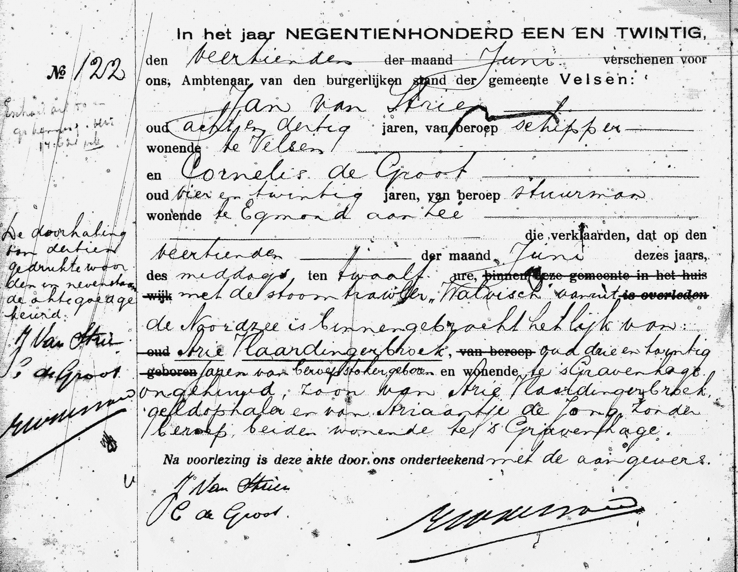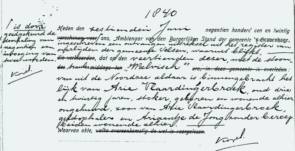 Te IJmuiden werd het dode lichaam van de stoker Arie Vlaardingerbroek aangebracht.
