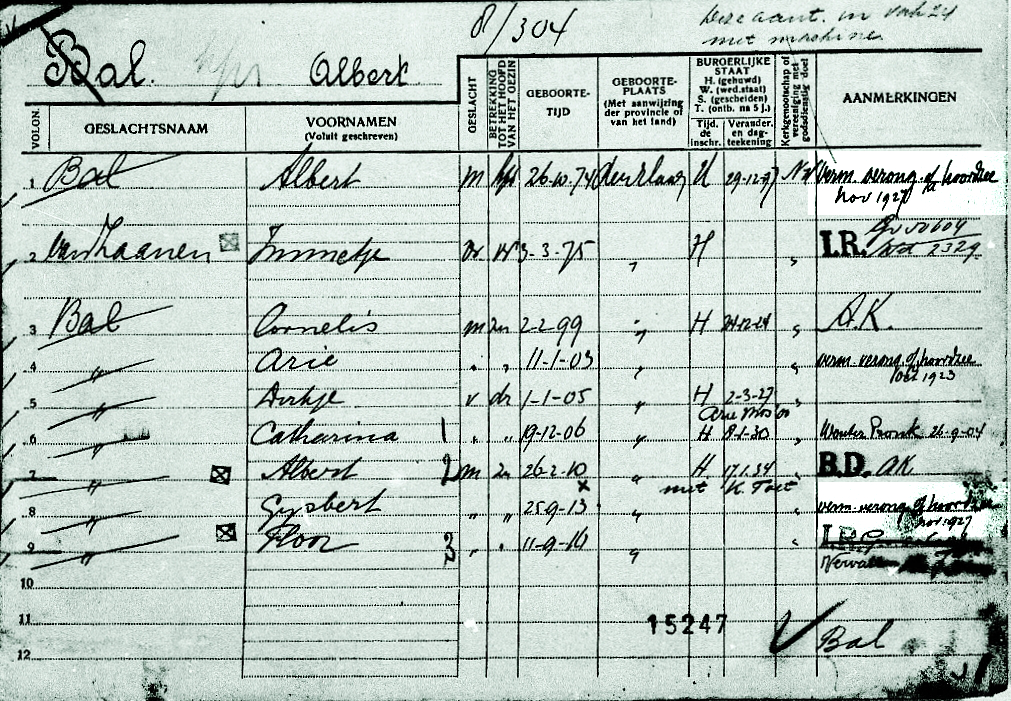 * Albert- en Gijsbert Bal zijn vader en zoon. Een zoon ,respectievelijk broer, Arie- kwam in oktober 1923 om op de SCH 60 'Hubertha Cornelia'.