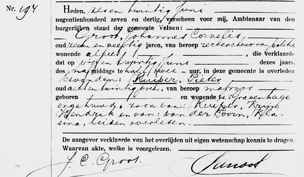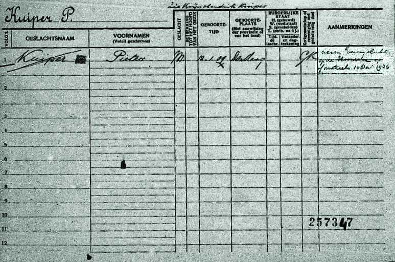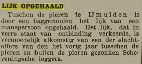 * Pieter Kuiper werd op 25 juni 1937 uit de buitenhaven van IJmuiden opgebaggerd.