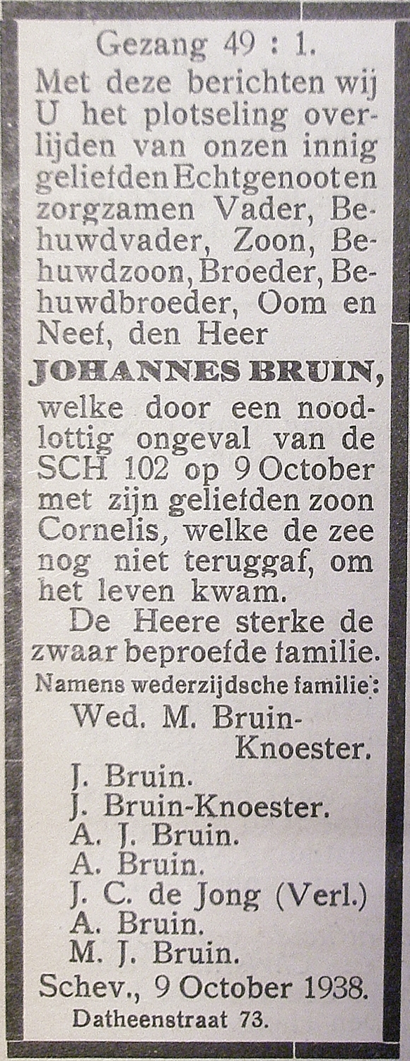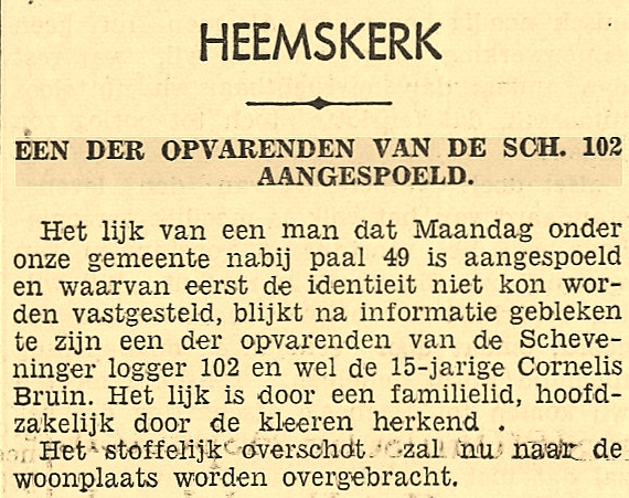 * Johannes- en Cornelis Bruin zijn vader en zoon. * Cornelis spoelde op 1 november ter hoogte van Heemstede op het strand aan.