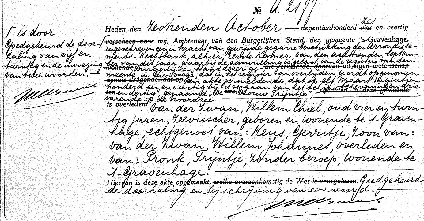 Hun vader -Willem Johannes van der Zwan- verdronk in augustus 1918 op de SCH 402 'Huibertje'.