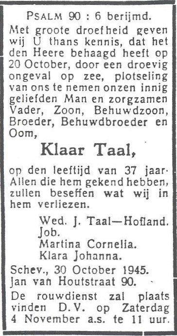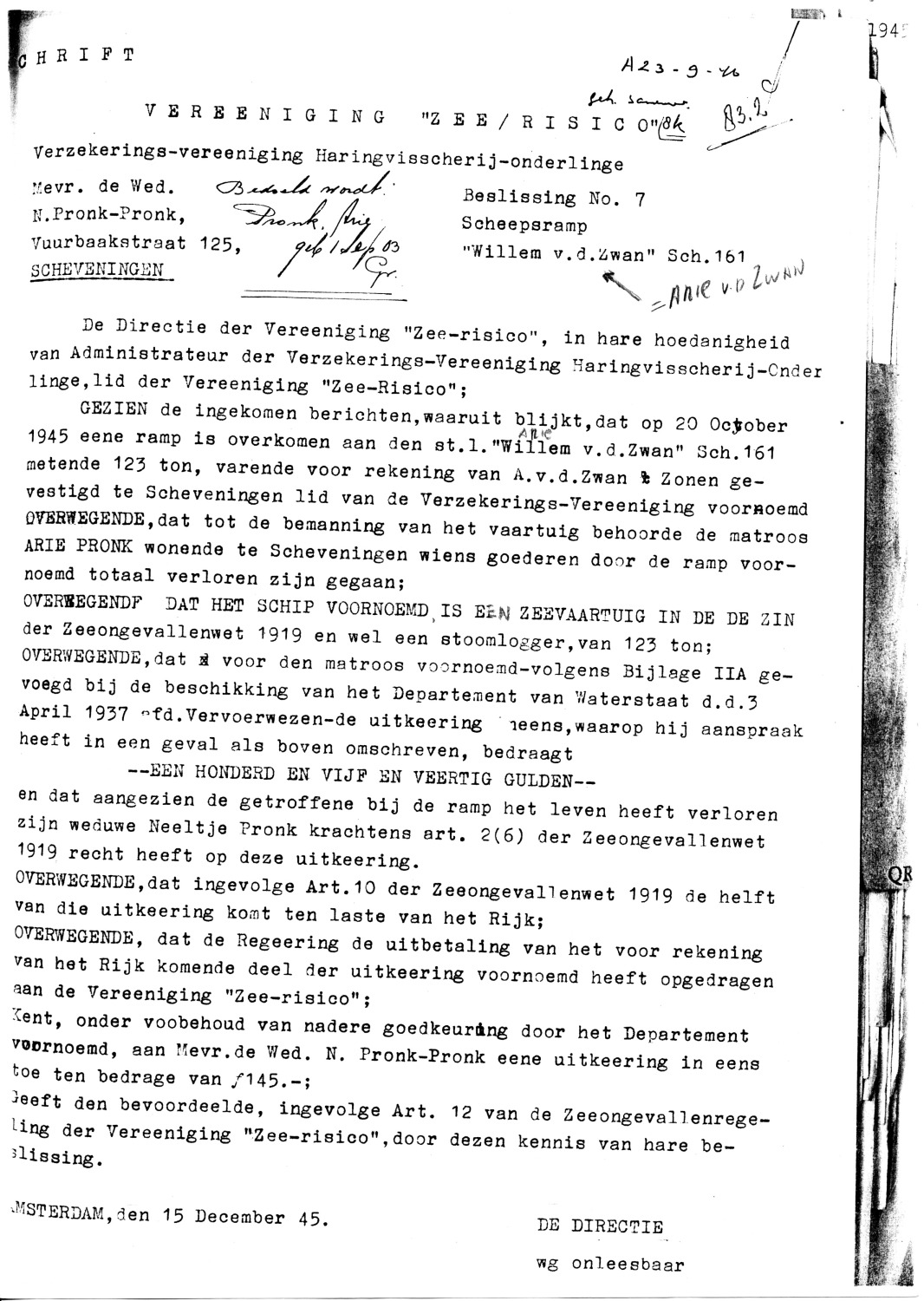 * Arie Pronk: zijn broer Pieter- verdronk in november 1937 op de SCH 37 'Geertruida Jacoba.'