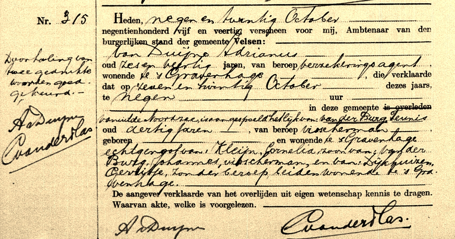 * Dirk van Duijvenbode: zijn vader Jacob- kwam in oktober 1903 om op bomschuit SCH-1 'Clara Johanna.' Zijn broer Cornelis- kwam in september 1911 om op de SCH-460 'Rotterdam.
