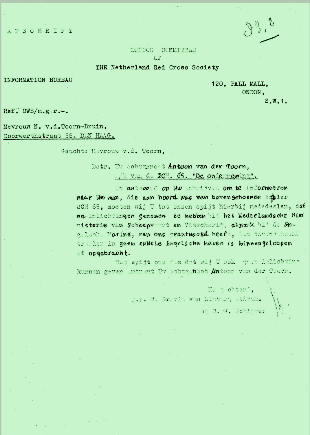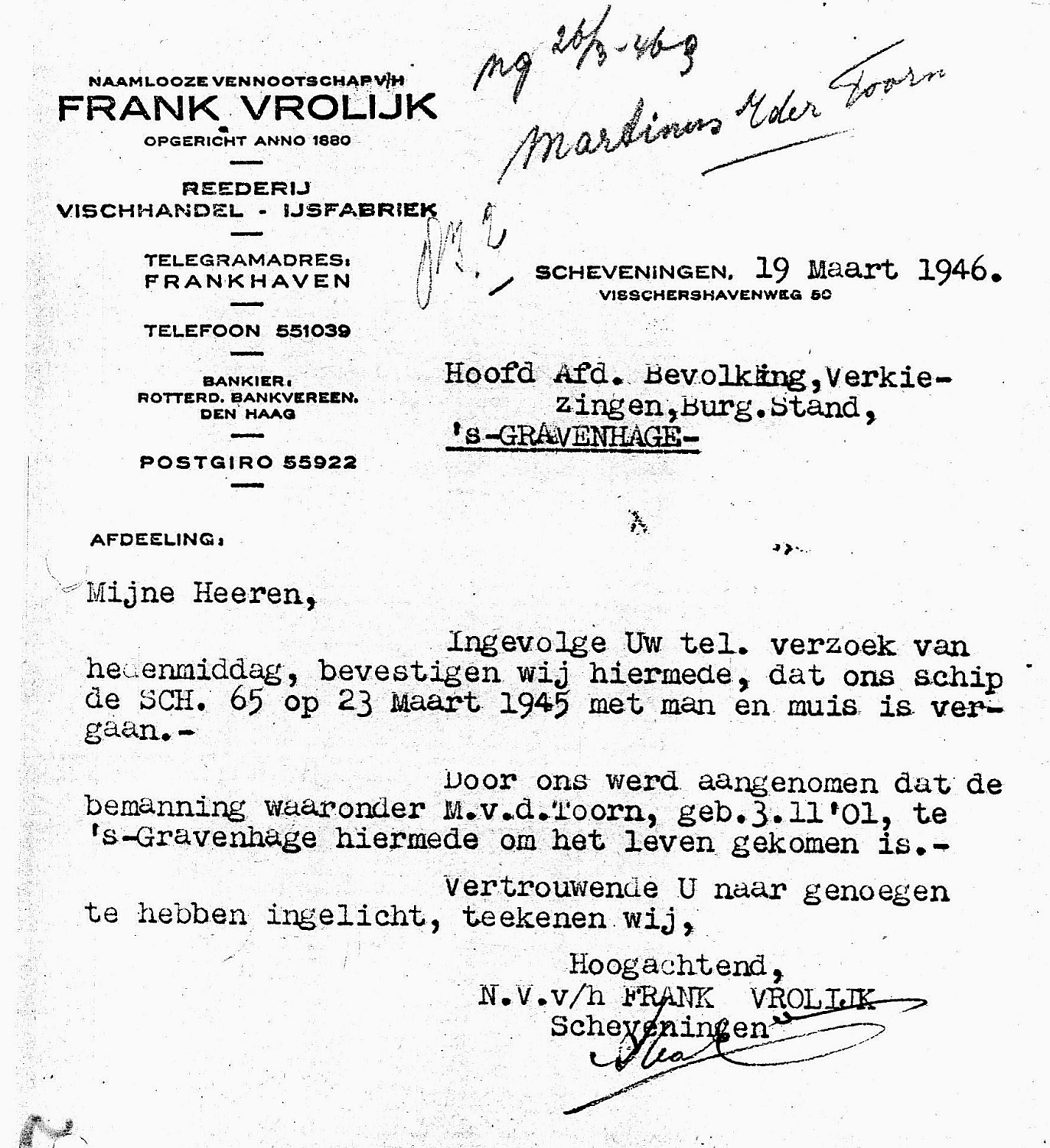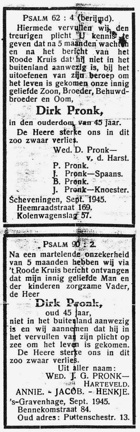* Martinus Engel Nutbeij: zijn vader Hendrik- kwam in april 1941 om op de SCH 135 'Cornelia Maria.'