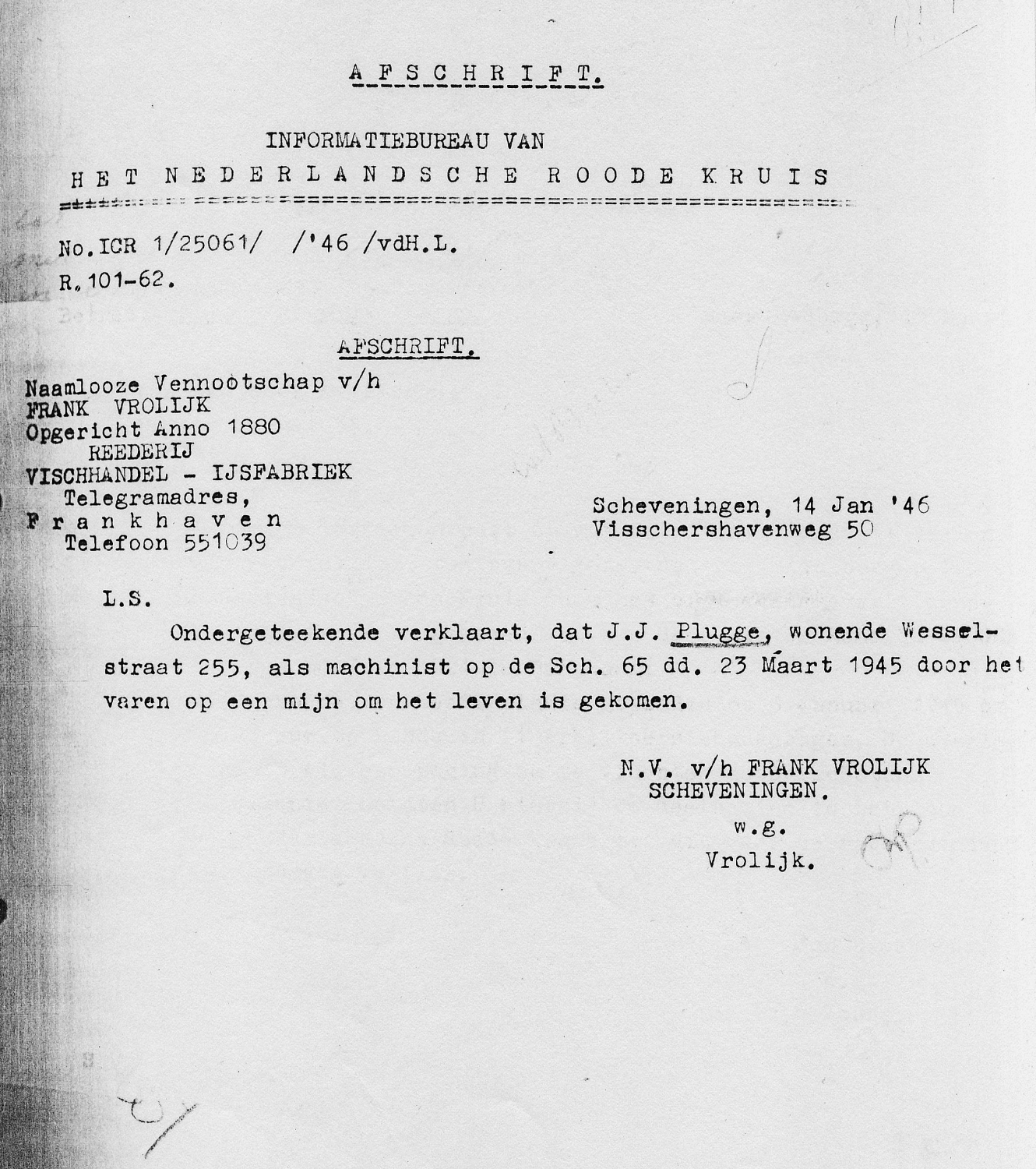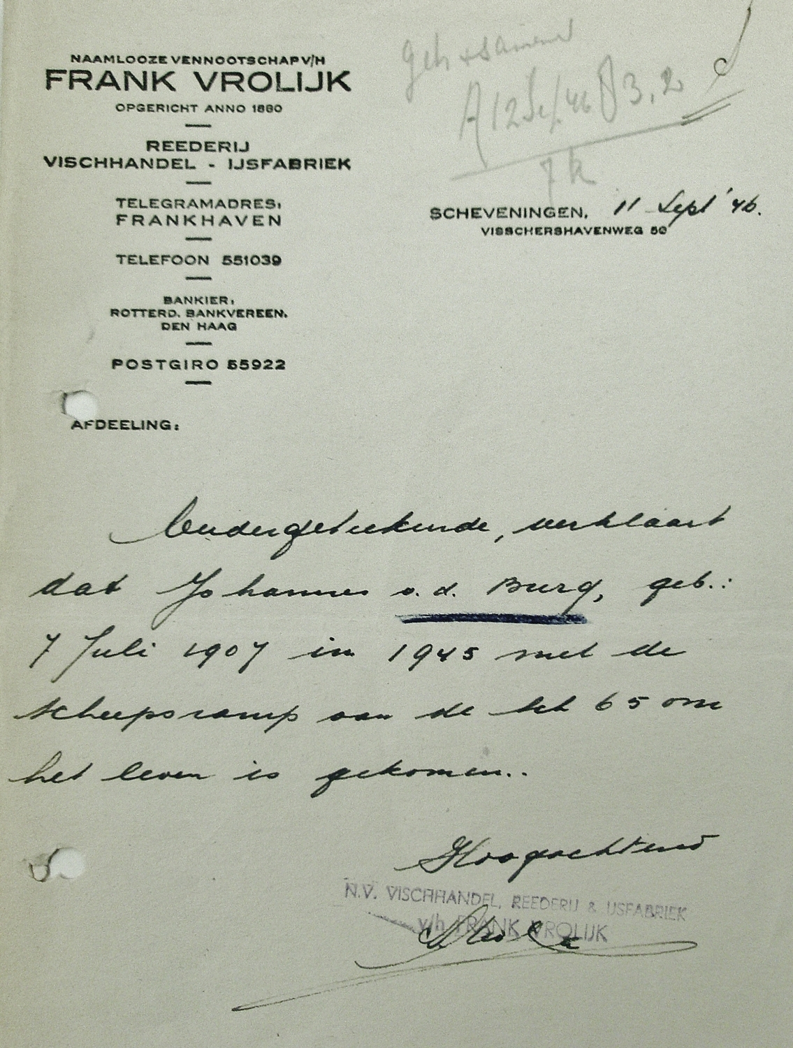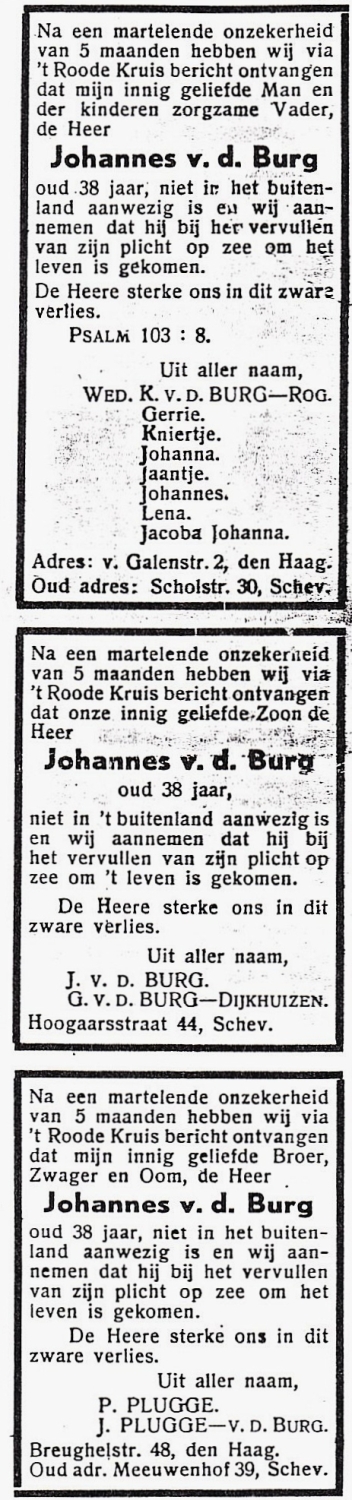 * Johannes van der Burg: zijn broer Teunis- kwam om in oktober 1945 op de SCH 161 'Arie van der Zwan'.