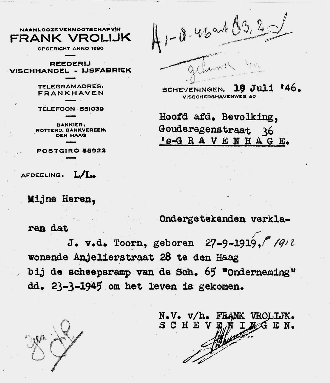 * Arie Beekhuizen: zijn zoon Gijsbert- kwam in dezelfde maand om op de IJM 263 'Guus'.