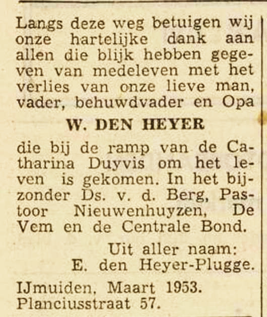 * Wouter den Heijer was te Scheveningen geboren maar in 1929 verhuisd naar IJmuiden.