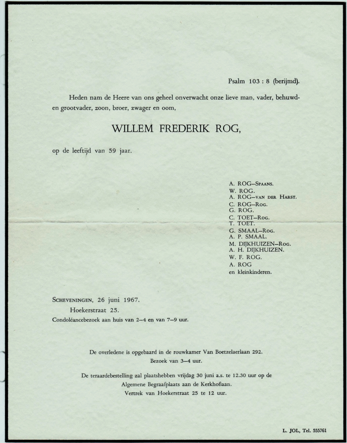 Aan boord overleed Willem Frederik Rog. Naar verluidt overleed Rog na een val op zijn hoofd.